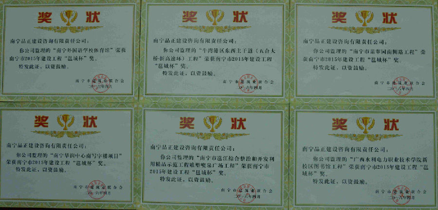 (本站訊 通訊員 羅耿)近日,由南寧市建筑業(yè)聯(lián)合會(huì )組織評選的南寧市2015年建設工程“邕城杯”獎結果揭曉,南寧品正負責監理的南寧華潤中心南寫(xiě)字樓工程、南寧外國語(yǔ)學(xué)校體育館工程、南寧市翡翠園南側路工程、牛灣港區東西主干道(五合大橋一新高速環(huán))工程、廣西水利電力職業(yè)技術(shù)學(xué)院新校區圖書(shū)館工程和南寧市邕江綜合整治和開(kāi)發(fā)利用精品示范工程雕塑?chē)娙獜V場(chǎng)等6個(gè)工程榮獲該獎項。南寧市“建設工程質(zhì)量邕城杯”獎是我市建設工程質(zhì)量的最高榮譽(yù)獎,獲獎的建設工程施工質(zhì)量達到本市的一流水平。
