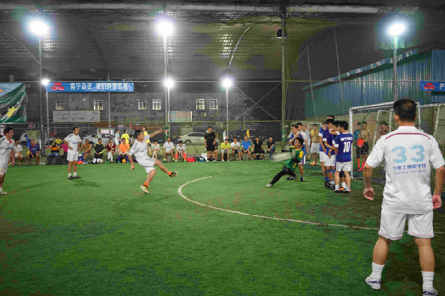 下半場(chǎng)開(kāi)始,盡管大比分落后,市建管處憑借老道的經(jīng)驗不急不燥控制著(zhù)場(chǎng)上節奏,冷不丁連入兩球,6:4逼近比分。南寧品正籍著(zhù)年輕、體力好,頻繁穿插跑動(dòng)封堵出球線(xiàn)路,由馮乙梃右路遠射,再次以7:4拉開(kāi)差距。隨著(zhù)時(shí)間的流逝,建管處也開(kāi)始緊張起來(lái),南寧品正也略顯疲憊,在一次暫停后,建管處隨即加強攻勢,第70分鐘將比分追成7:5,看到了追平的希望。離終場(chǎng)還剩10分鐘,建管處壓著(zhù)南寧品正狂攻,第78分鐘,南寧品正守門(mén)員飛哥撲救脫手,第二反應再補犯規,點(diǎn)球!比賽來(lái)到了最高潮!除品正的啦啦隊外,全場(chǎng)球迷都在為落后的建管處加油!點(diǎn)球發(fā)出…守門(mén)員撲出(要知道品正的守門(mén)員已是58歲高齡啊,這反應)…頭球補射入網(wǎng)!一切都在電光火石之間發(fā)生,全場(chǎng)歡聲雷動(dòng)!比分追至7:6。建管處隊員都在激情長(cháng)嘯、相互擊掌鼓勵。南寧品正沉著(zhù)冷靜,中圈發(fā)球,趁建管處仍沉浸點(diǎn)球補進(jìn)的喜悅中立足未穩,由藍劍平帶球至左路突然起腳勁射,球砸中右立柱反彈入網(wǎng)!近處裁判果斷鳴哨手指中圈判進(jìn)球!另一名裁判仍在猶豫,跑過(guò)去詢(xún)問(wèn),才一致認定進(jìn)球!離球門(mén)稍遠的建管處隊員本有疑問(wèn),看到守門(mén)員和后衛隊員遺憾的抱頭,也服從了判罰。從進(jìn)球到丟球這不到半分鐘的巨大落差,讓建管處的隊員們有些失落,時(shí)間也所剩無(wú)幾,最終定格在8:6。南寧品正驚險取勝。