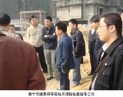 近日,為加快月灣路工程的建設,解決周邊小區等排水問(wèn)題,南寧市建委領(lǐng)導到南寧品正監理的月灣路現場(chǎng)視察,指導解決月灣路邊坡滑坡、塌方的問(wèn)題,并要求施工單位制定施工方案報監理審核。該現場(chǎng)指導會(huì )為推進(jìn)工程的進(jìn)度起了很大的作用。