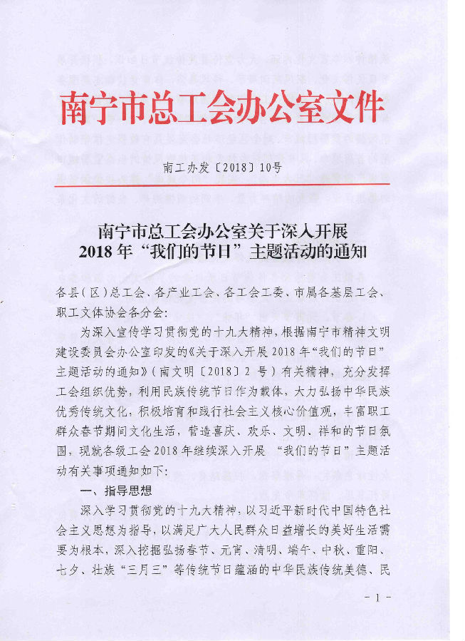 南寧市總工會(huì )辦公室關(guān)于深入開(kāi)展2018年“我們的節目”主題活動(dòng)的通知
