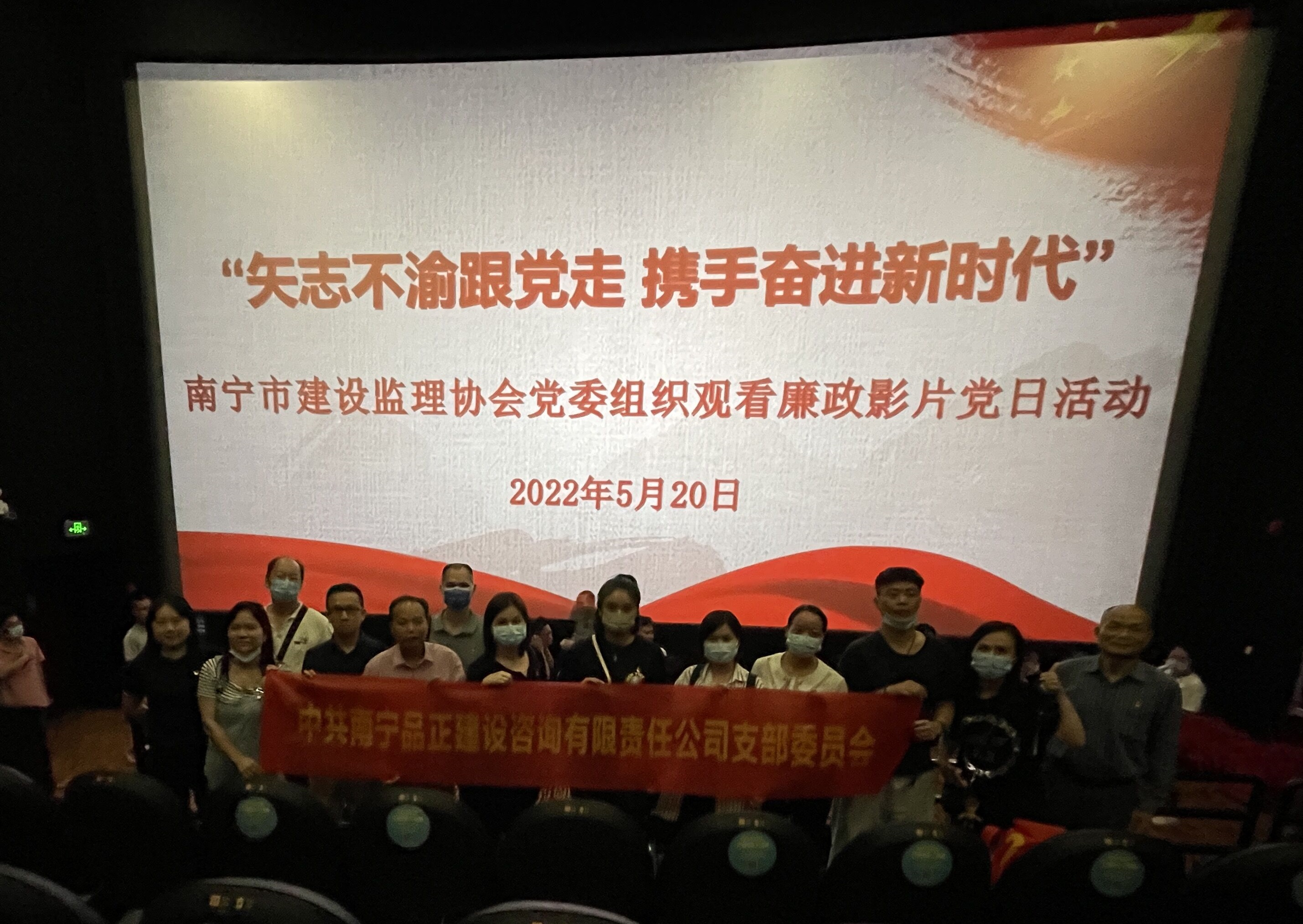 為進(jìn)一步加強反腐倡廉教育,深入推進(jìn)廉政文化建設,學(xué)習貫徹習近平總書(shū)記關(guān)于黨風(fēng)廉政建設和反腐敗斗爭的重要言論,2022年5月20日下午,南寧市建設監理協(xié)會(huì )黨委開(kāi)展“黨風(fēng)廉政”主題黨日活動(dòng),組織觀(guān)看反腐倡廉電影《決不姑息》,接受黨風(fēng)廉政警示教育。公司黨支部組織全體黨員及入黨積極分子一起觀(guān)影。